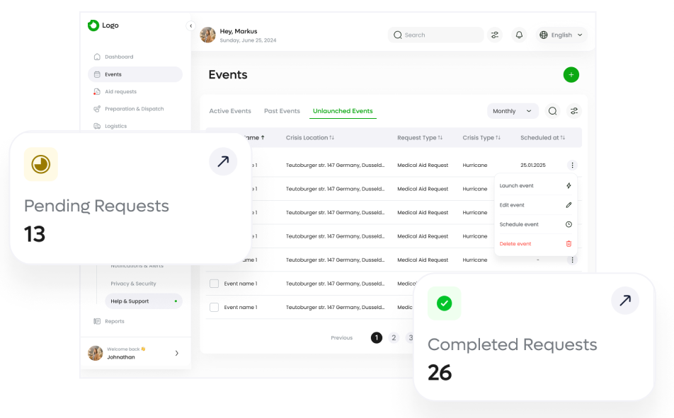 Built to scale with any crisis. From pandemics to recovery efforts—our platform adapts to your mission.