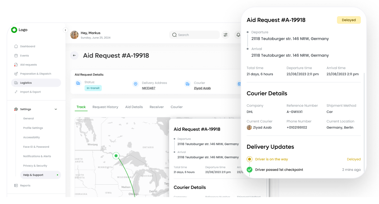 Our platform gives admins full control over the aid process—from reviewing and assigning requests to tracking real-time distribution and generating insightful reports.